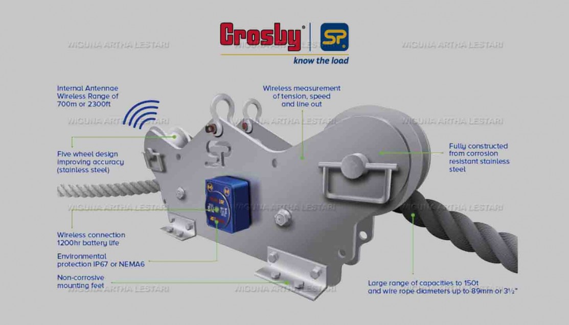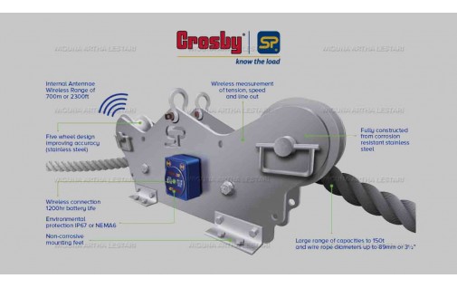 Crosby - Straightpoint Wireless Running Track Tensiometer or RLTM was built with dock, marine, offshore, towing and rescue applications in mind. This is especially useful when there are no anchors or dead ends in the line for attaching SP Radiolink or Loadlink digital dynamometers. It measures tension forces at speeds up to 20m/min or 65ft/min with wire rope configurations up to 150 tons. TIMH is made of marine grade stainless steel.